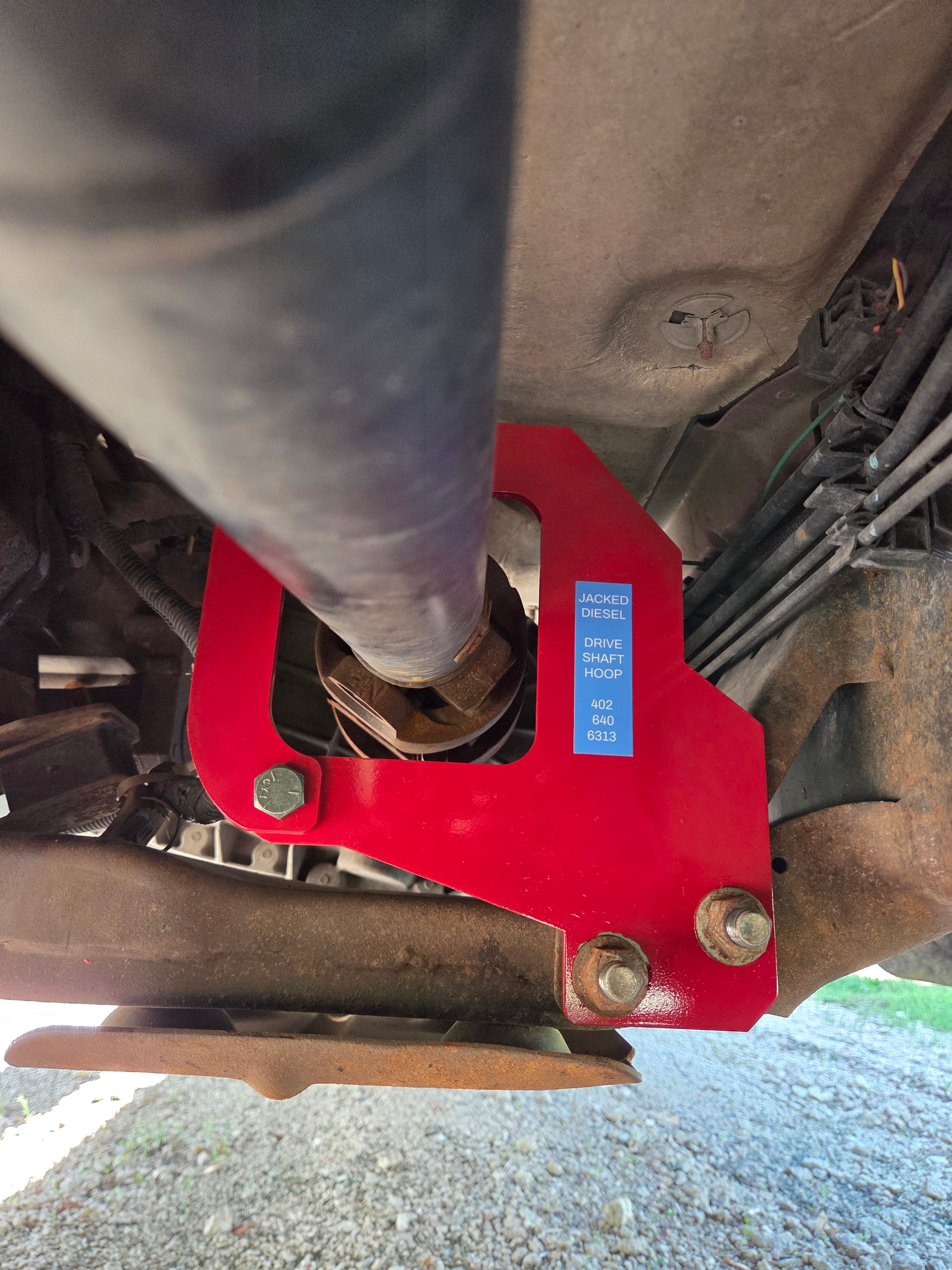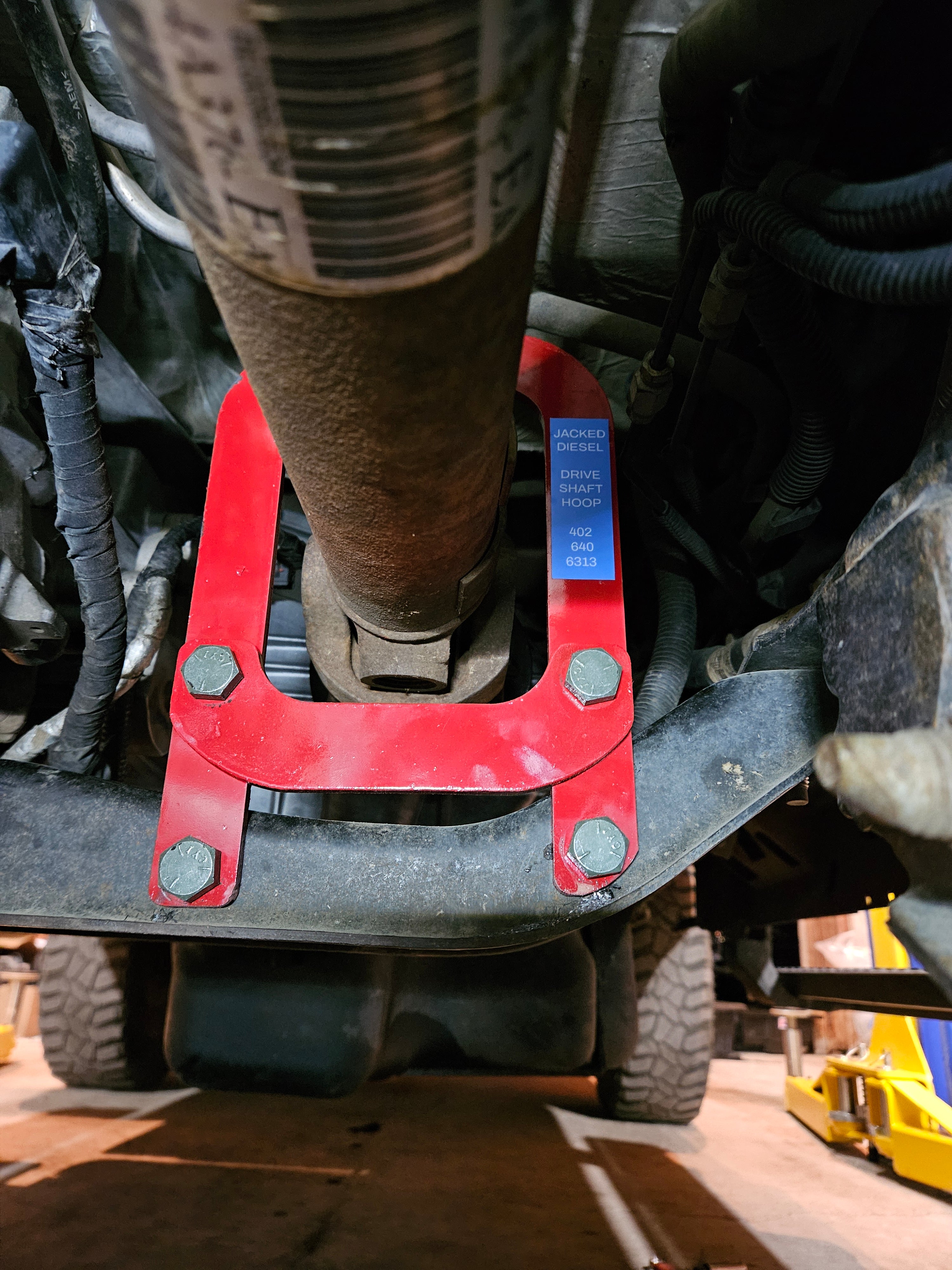 Precision laser cut drive shaft hoops from quarter inch steel designed to protect fuel lines, brake lines, wiring harness, and transmission housing in the unfortunate event of a driveshaft or transfer case failure!