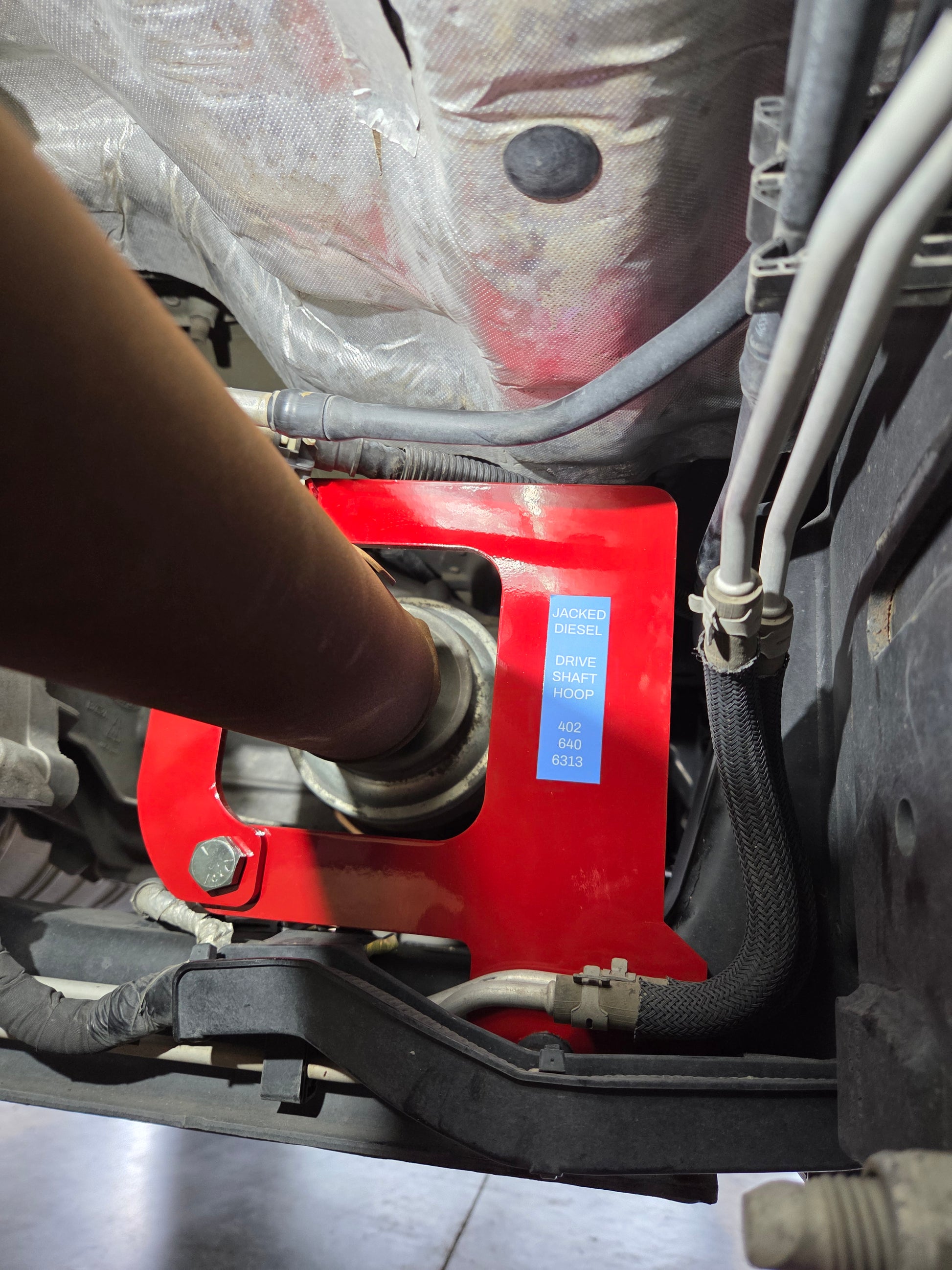 Jacked Diesel LLC is not responsible for any damage to the vehicle. This product is designed to help reduce damage and protect components. In the event that the driveshaft hoop is needed to be used a driveline component in the vehicle has already failed. This product does not prevent driveshaft or transfer case failures.