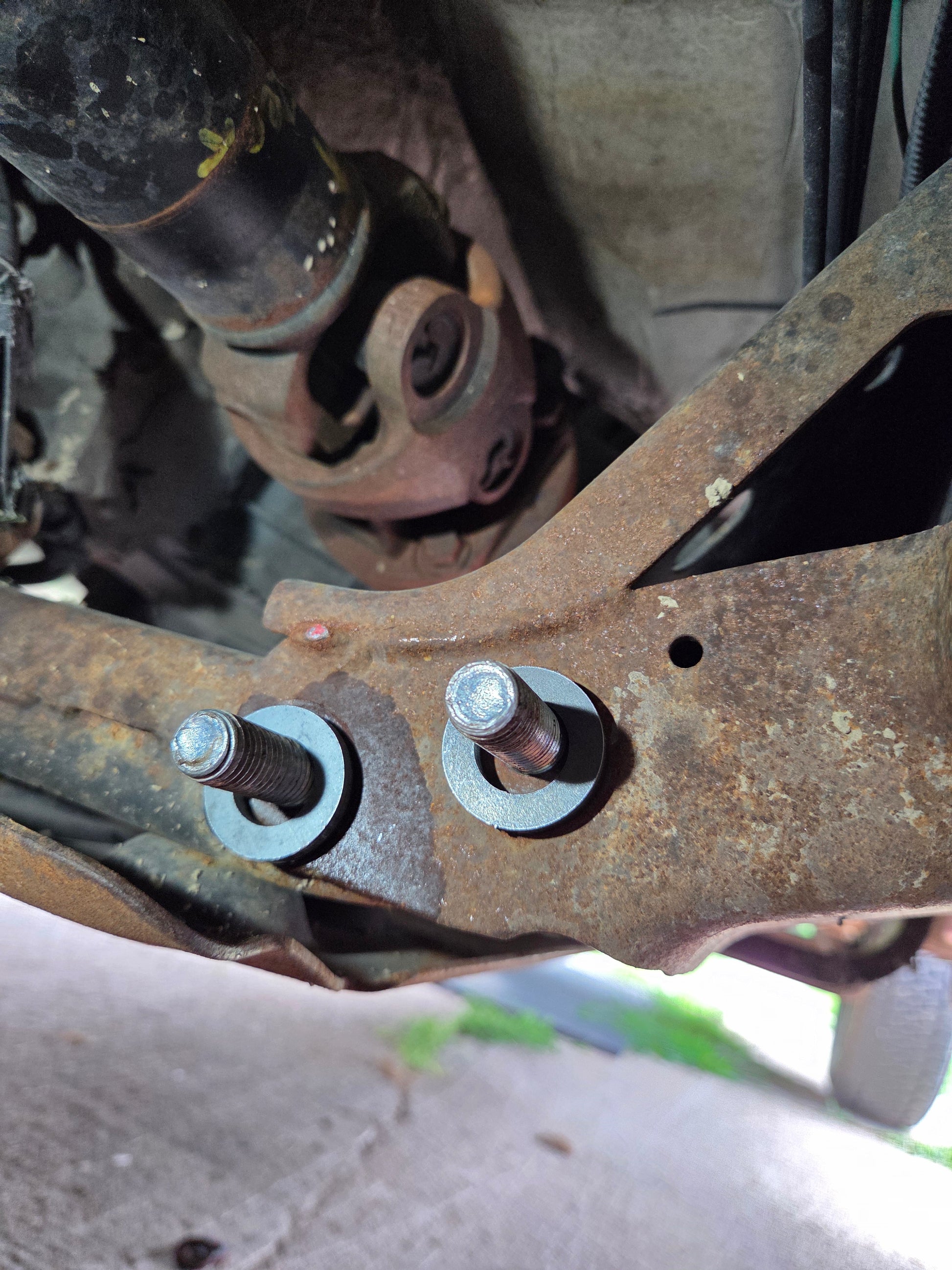 No drilling required. Direct bolt on with longer cross member bolts. ONLY REMOVE 1 CROSSMEMBER BOLT AT A TIME! Make sure driveshaft is centered in the hoop and the hoop is not rubbing on any fuel lines or brake lines before final tightening of crossmember bolts. Big spacer washers go between driveshaft hoop and crossmember.